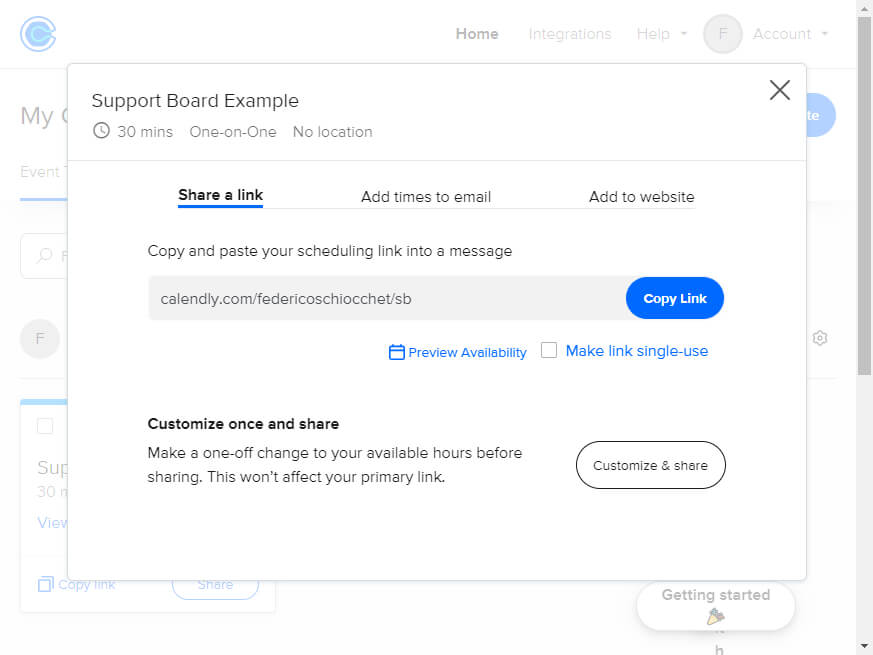 - To send the Calendly invitation, utilize the rich message button type. Ensure to enter the Calendly URL you copied in the previous step as the URL. Additionally, include the success attribute to customize the message that will be sent after the booking is successfully completed. E.g. [button link="https://calendly.com/federicoschiocchet/sb" name="Schedule a meeting" success="Thank you! Your meeting has been scheduled."]