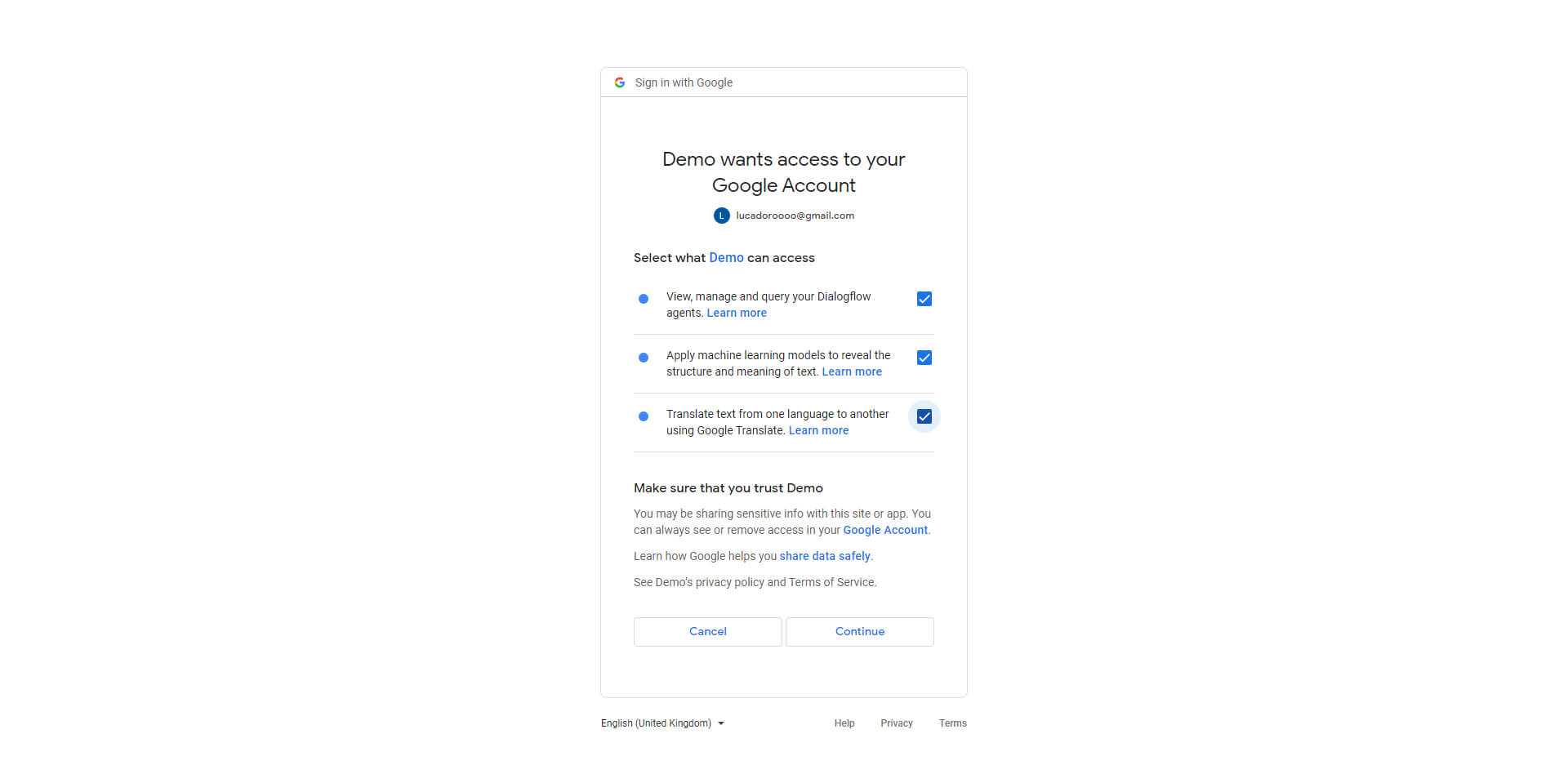 - Fill in all required fields, like key and description, and click Save And Continue, you can enter any text you want.