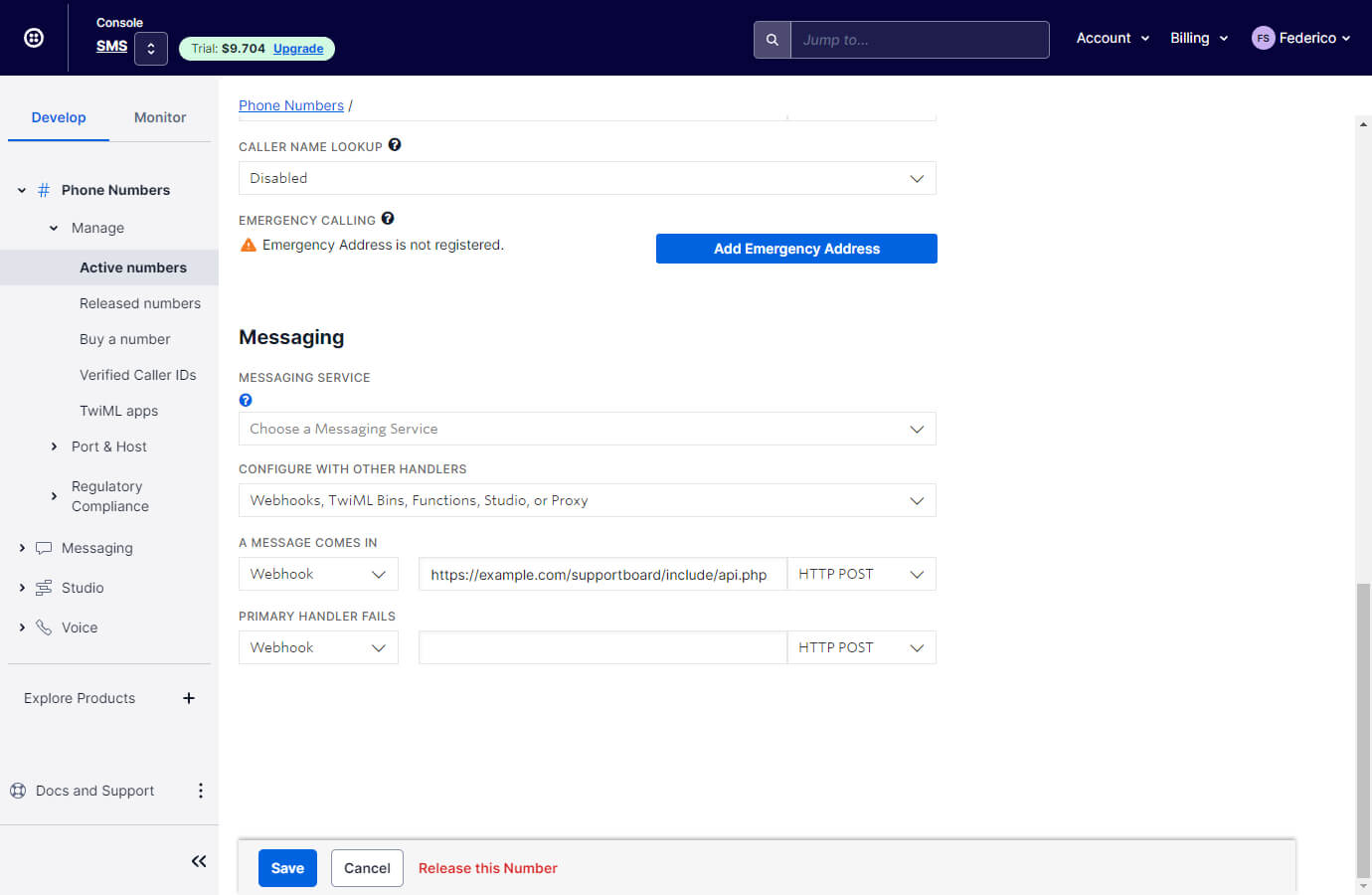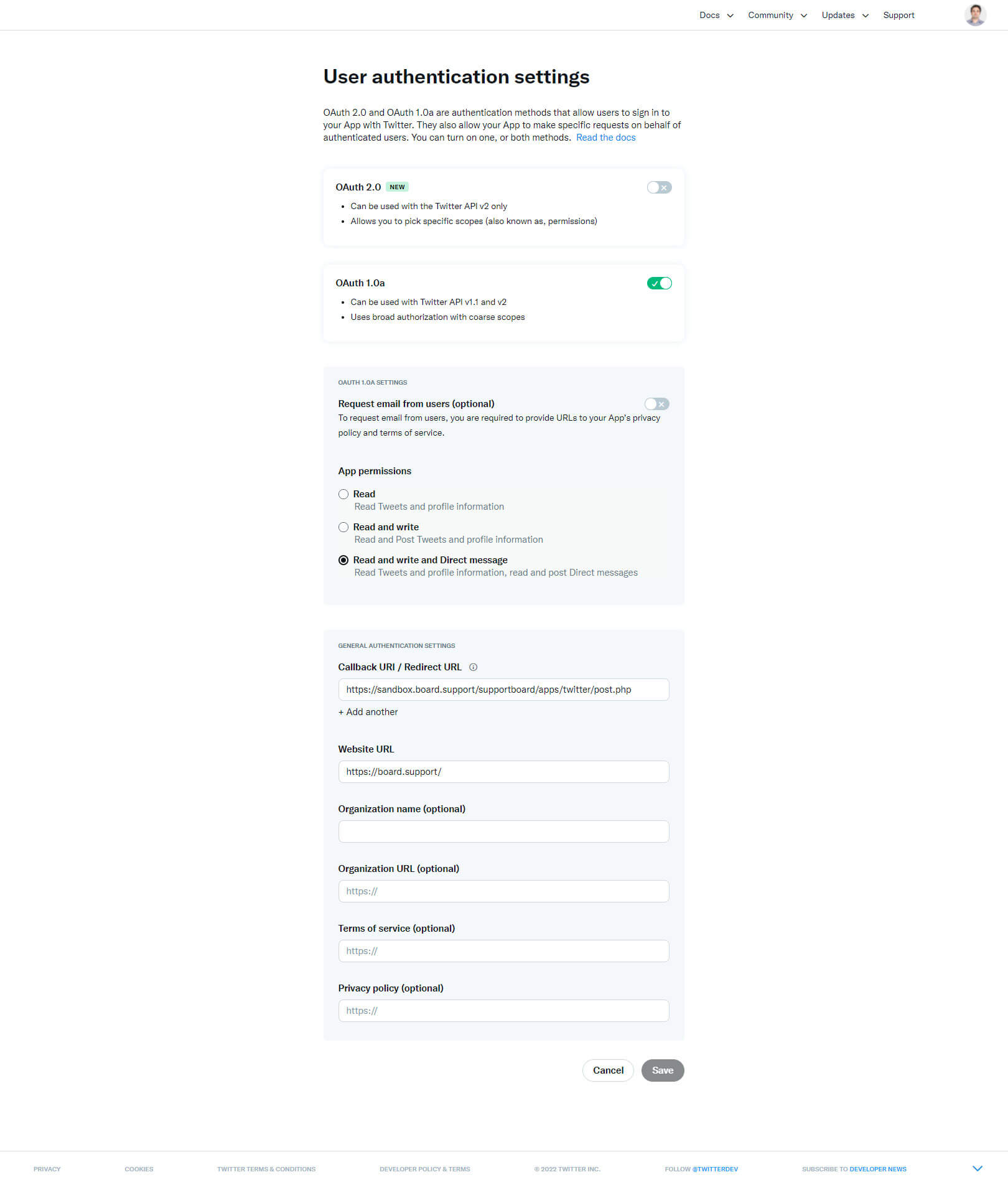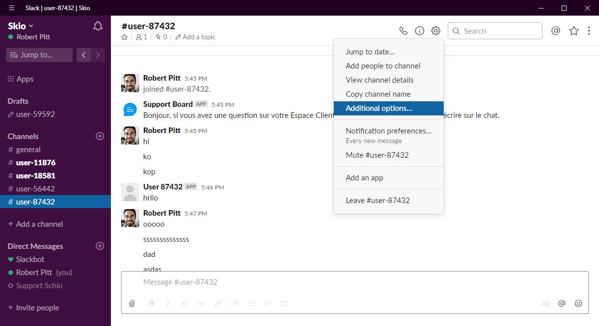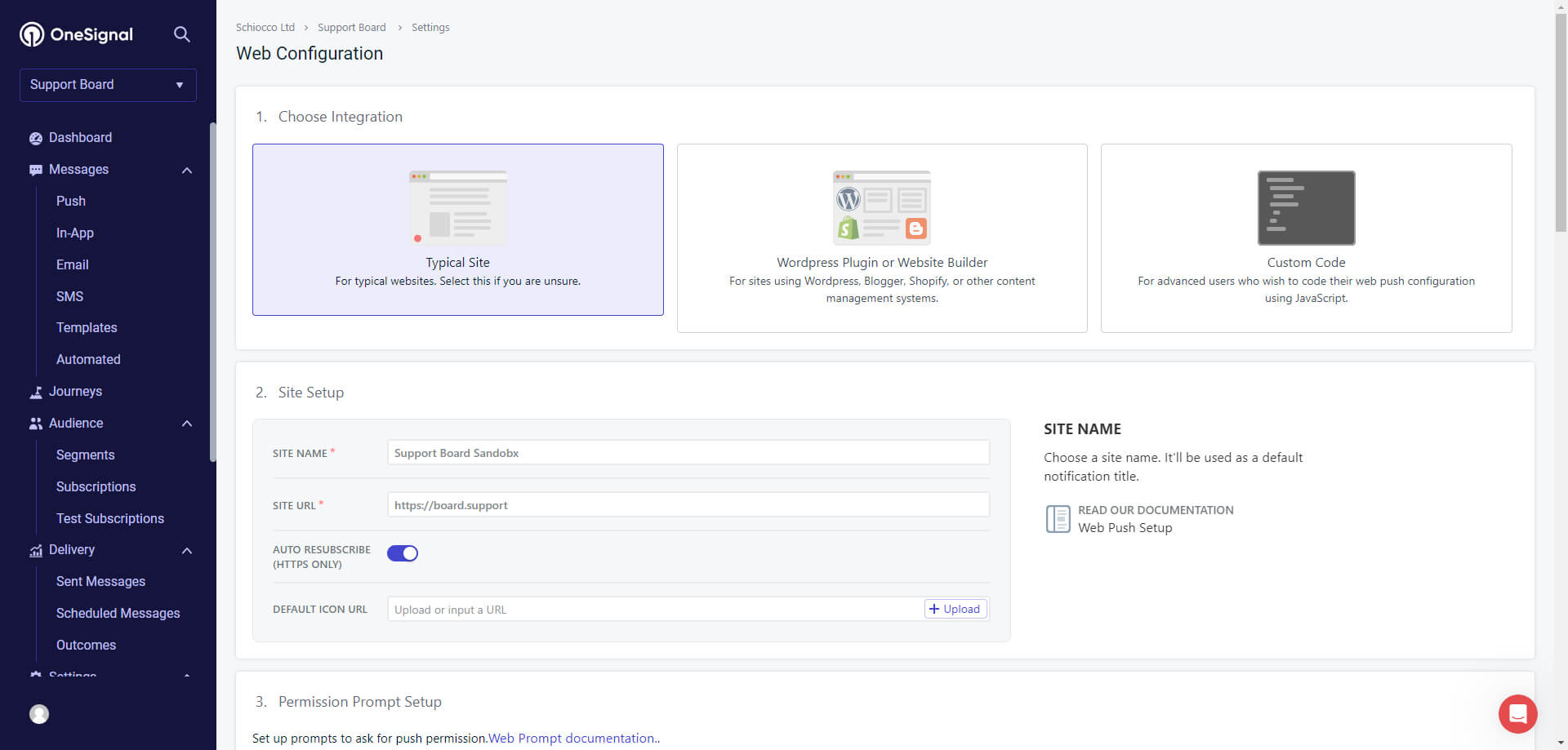 - Copy the Webhook URL, click Continue, and then enter the Support Board admin area and enter it into Settings > Miscellaneous > Webhooks > URL, activate the webhooks, save the settings and reload Support Board.